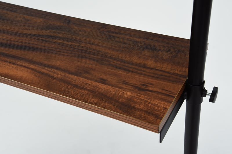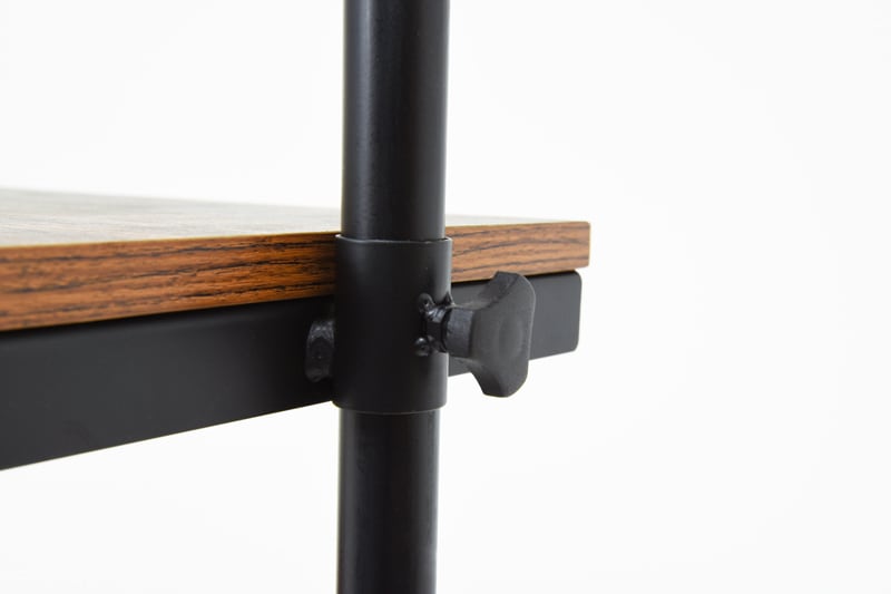 高さ無段階調整可能な木目調の棚でスッキリ収納できる、つっぱり5段ラック。